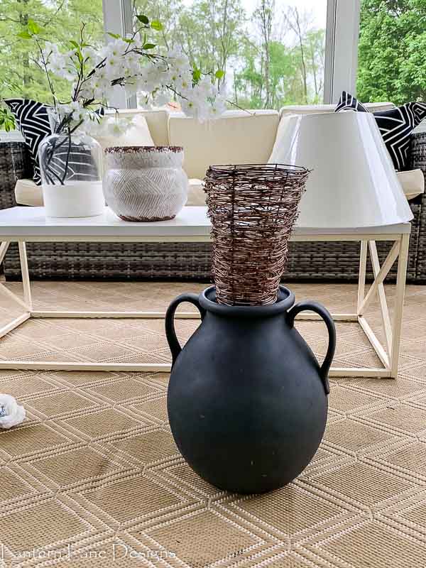 For our sunroom I really wanted a larger lamp and this large vase was the perfect size and shape. I can’t say I love the handles on the fake lamp but beggars can’t be choosers, right?