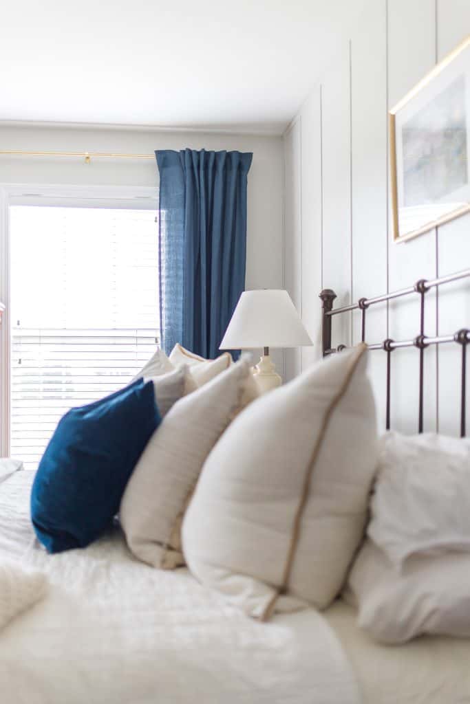 In the bedroom, aim for calm and relaxing colors. I painted our bedroom Silver Drop again since I love the color so much but blues, greens, and lavenders are great colors for a relaxing bedroom